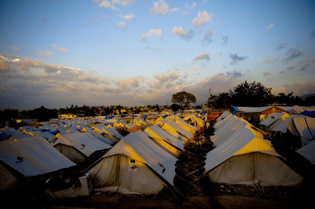 Below is a picture of a tent city just before sunset in Port-au-Prince, Haiti.