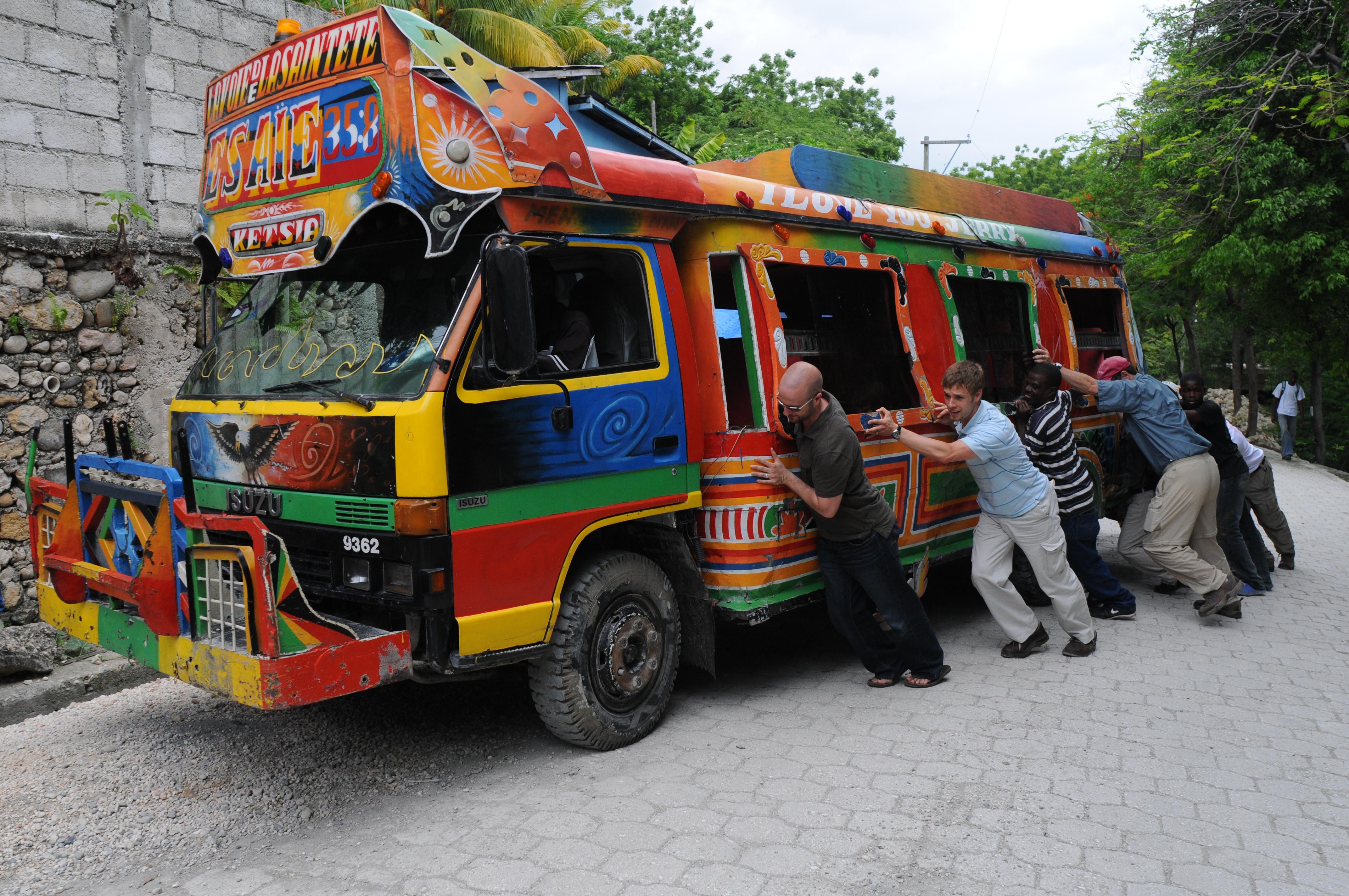 Pushing a broken down taxi out of the way on a main road. 95% of the roads we drove on were dirt or rubble. I saw more broken axels and drivetrains than you could imagine.